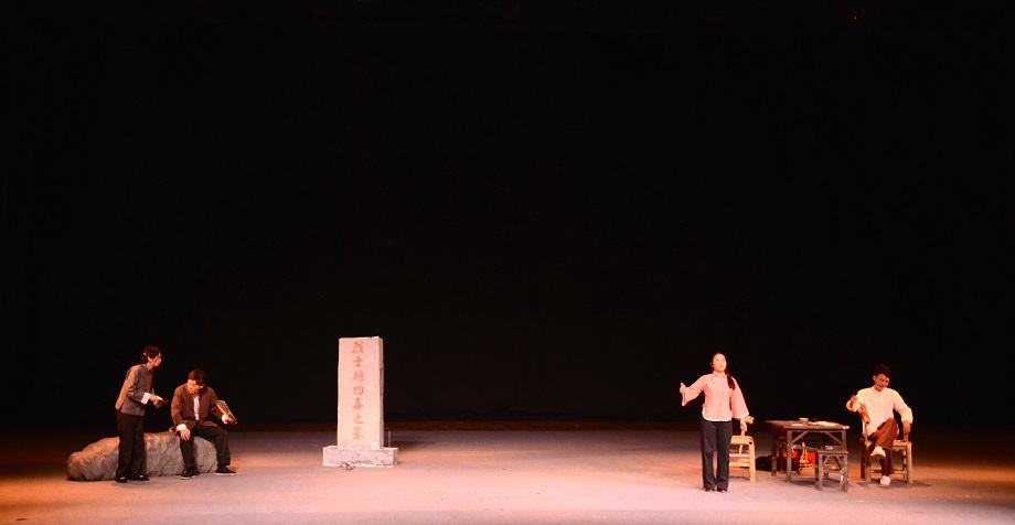 今晚舞台上不仅有对《麦克白》《生日晚会》这样的经典剧本的“新”演绎,更是有学生手中原创的剧本。由“自由人3.0”剧组带来的《四喜的碑》的剧本是经亨颐老虎机 的张惠珺同学创作而成。该剧讲述了一个遥远的战争年代的故事。四喜的“战死”让其家人成为了“烈士家属”,并且因此获得了极大的利益。当全家人都沉浸在舒适的新生活中时,四喜却回来了。原来他并没有战死而是当了逃兵,所谓的“烈士”只是一个误会。但是此时他已经成了家庭的累赘甚至是毁灭者。在家人的逼迫下,走入绝境的四喜选择了自杀,继续了未完成的死亡。编剧用这样一个悲哀和荒谬编织的“圆满结局”揭穿了“生命属于生命者”这一伪命题。该剧获得了指导老师黄岳杰老师极高的赞誉,并且斩获了本届话剧节剧本大赛一等奖、最佳女演员、优秀男演员、最佳导演奖四个大奖,充分体现了大学生原创的力量!
