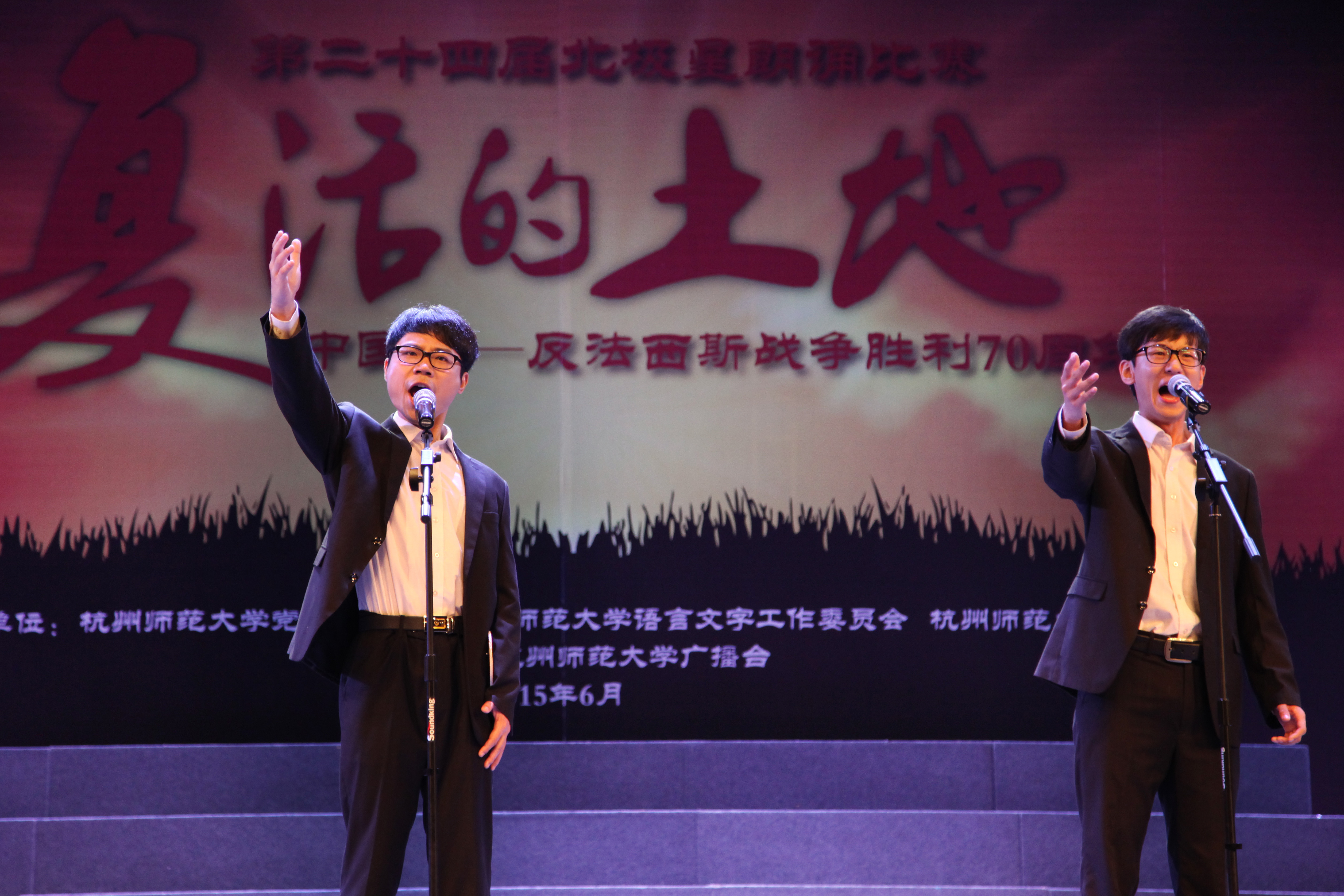 在刚刚落幕的老虎机 第24届北极星朗诵比赛中传来喜讯,老虎机 学子斩获佳绩,其中来自历史131班杨顾超的参赛作品《甲午》获得非专业组的一等奖!来自中文131班王慧乐、中文133班舒靓芫两位同学合作的《碧落黄泉》以及中文131班翟俊《在变老之前远去》均荣获二等奖。本届比赛以纪念反法西斯胜利70周年为主旋律,主题取名“复活的土地”。