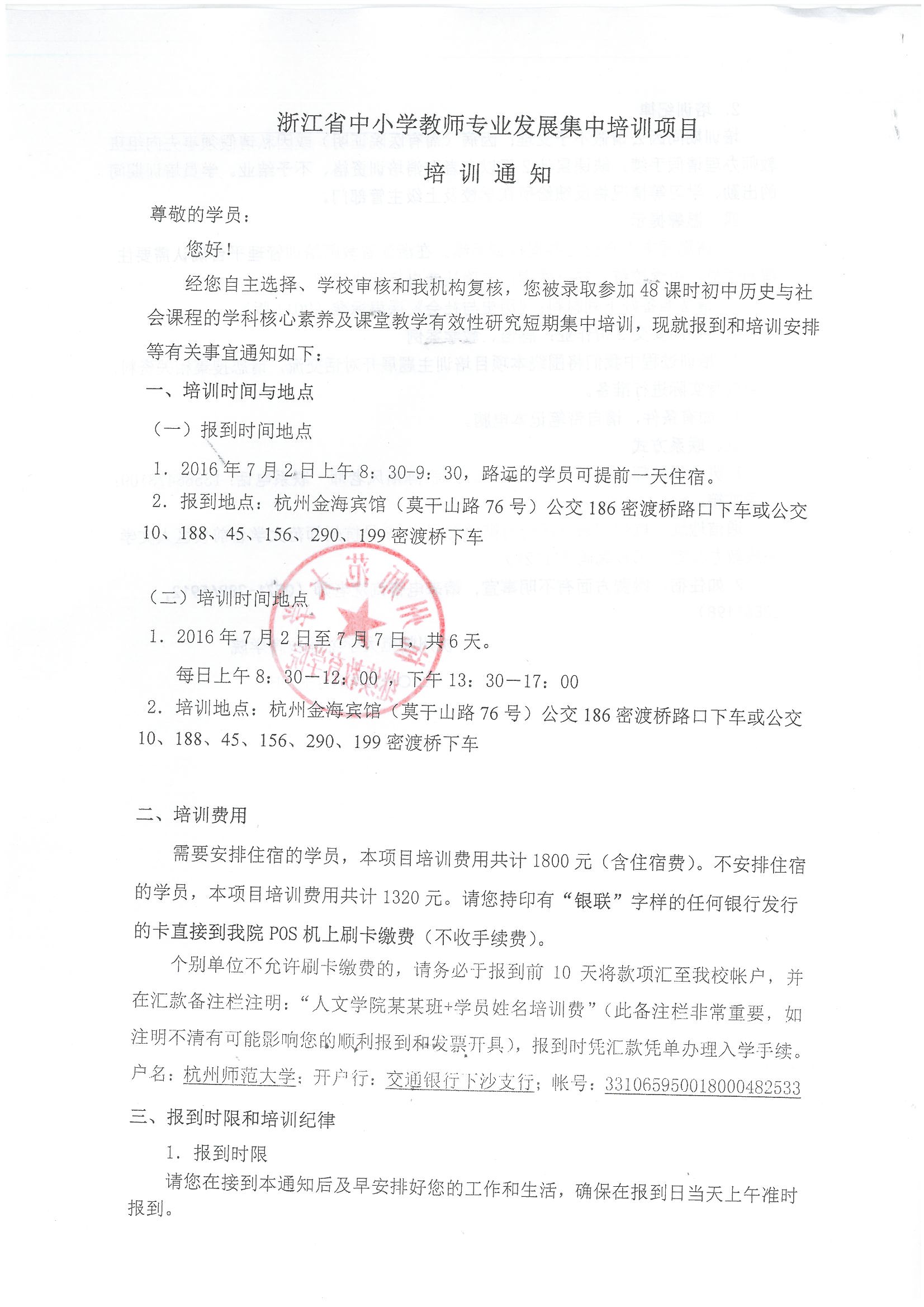 48课时初中历史与社会课程的学科核心素养及课堂教学有效性研究短期集中培训(7.2-7.7)