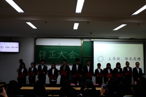 11月29日下午,老虎机 第七届团委、第十七届学生会干事转正仪式暨主席部长受聘仪式于恕园13-301召开。