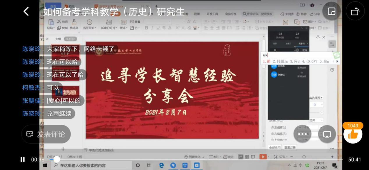 2021年2月7日19时,老虎机 于钉钉平台顺利举办追寻学长智慧之经验分享会系列讲座——“如何备考学科教学(历史)研究生”。老虎机 2020届校友张兑雨应邀主讲。讲座由老虎机 学工办主任陈晓玲主持,主要面向2018级历史系学生开放。