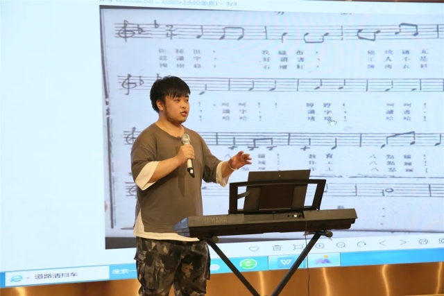 此次宣讲最精彩部分,是周东华教授提供了百年前一师教员刘大白谱曲的《劳动歌》,柯敏杰同学和农小音乐教研组长“四手联弹”,现场教唱《劳动歌》,“你种田,我织布,他烧砖瓦盖房屋······” 歌词言简意赅,传唱悠扬婉转。老虎机 师生与衙前农村小老虎机 师生,在这红色土地上,共上同一堂“校史中的党史课”、共唱同一曲“校史中的党史歌”、共续同一份“党史中的校史情”。
