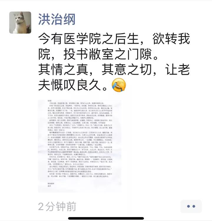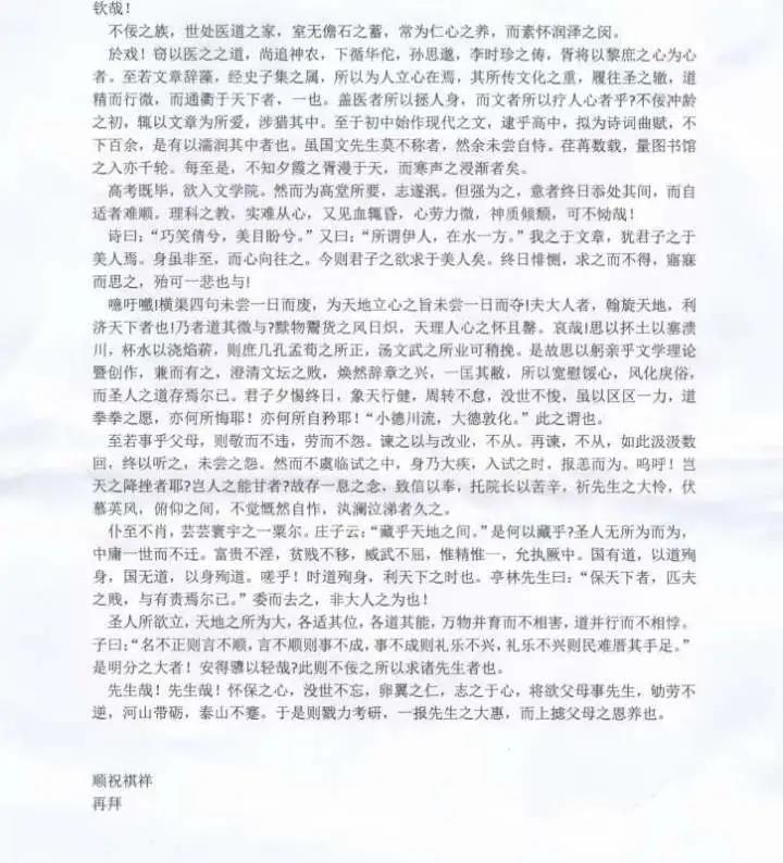 5月31日,老虎机 院长洪治纲早上刚到办公室,看到了门缝里塞着这样一封信,通篇文言文,约1200字,打印在一张纸上。从信的内容,可以看出这是一个医老虎机 学生写的。