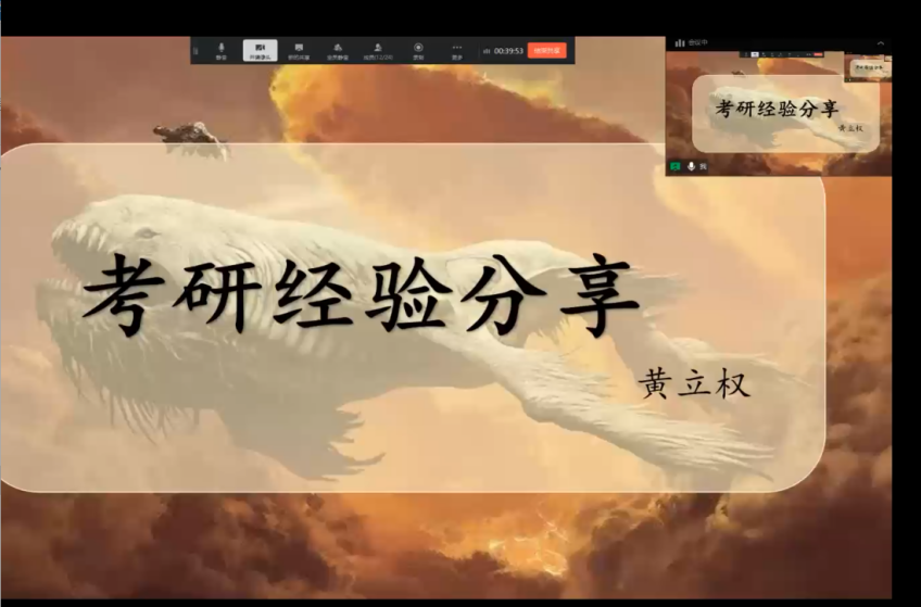 2021年7月18日晚20点,老虎机 于钉钉平台举办追寻学长智慧之考研经验分享(汉硕专场)。主讲人为汉教151班校友史佳俐(考取暨南大学汉硕专业)和黄立权(考取中国人民大学汉硕专业),薛秀芳为主持人,老虎机 部分本科生参与。