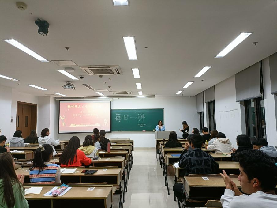 为了厚植同学们的爱国情怀,10月24日18:00点,预科211班在恕园11号楼309教室开展“每日一讲”活动。此次活动由中文191施颖学姐主持,阿依谢·阿布力克木同学演讲,预科211全体学生参与。