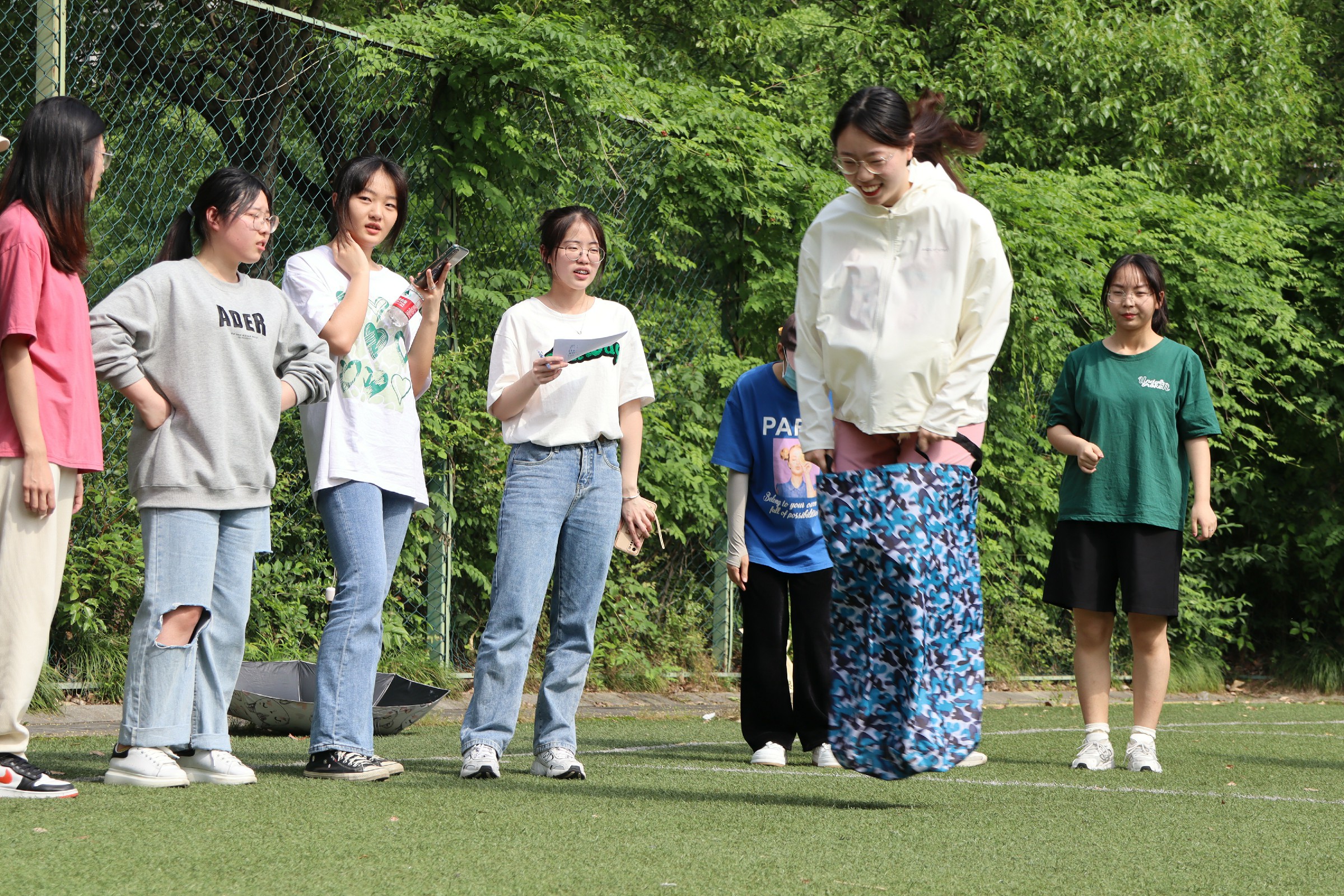 本次运动会主题为“亚运有我 励志青春”,并围绕该主题设置了袋鼠跳、跳大绳、乒乓球传递、趣味保龄球和亚运知识问答等五个项目。参加人员五至六人一组,共分为五组进行运动比拼。