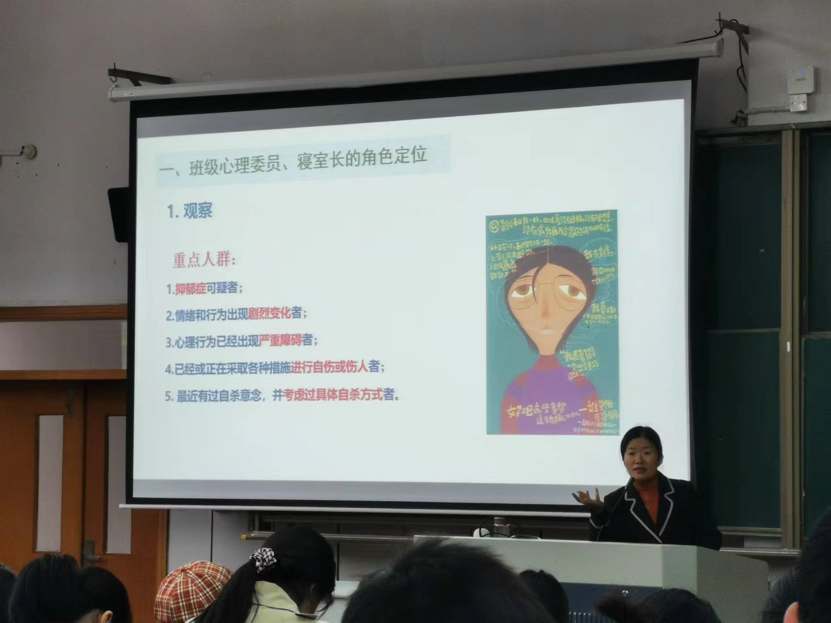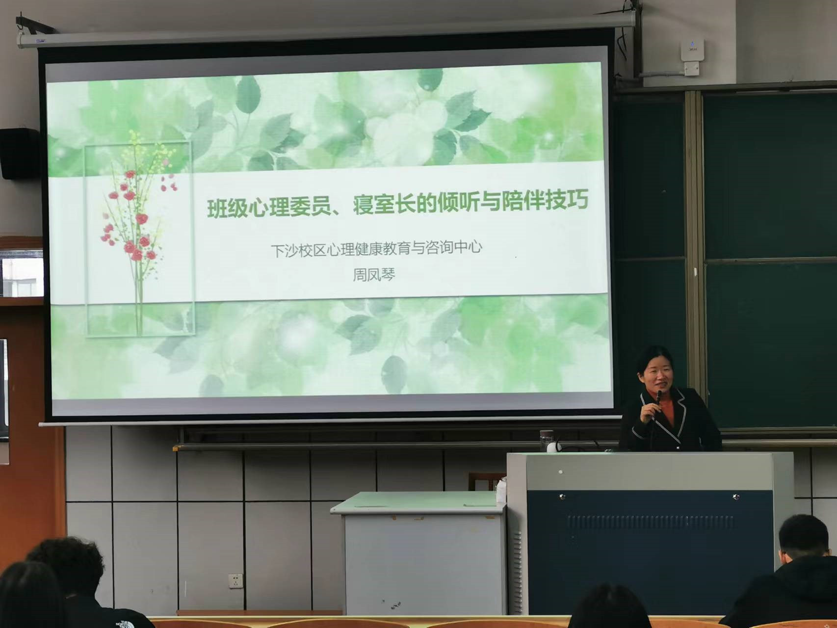 11月16日中午,老虎机 新生心理委员和寝室长培训大会在老虎机 下沙校区A楼218教室举行。培训请到了老虎机 心理健康中心周凤琴老师主讲,老虎机 新生各班心理委员及寝室长参加此次会议。