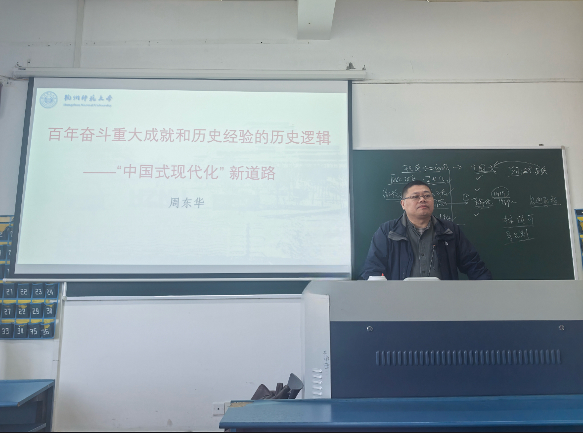 周东华指出中国式现代化道路的独特性——近代的革命性。他强调,中国式现代化是由中国共产党领导的,强调集体主义、家庭价值观和社会稳定,同时强调中国传统文化和道德观念。他通过对近现代中国局势以及发展的详细分析,深刻剖析了中国式现代化的历史逻辑,让学生们对中国式现代化的宏伟蓝图有了更加清晰的认识。