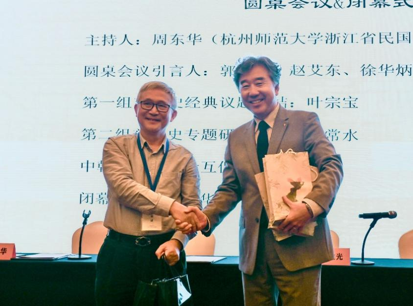在闭幕式环节,中韩两国慈善史研究会互赠礼物,共同推进东亚慈善史研究。周东华教授致闭幕辞,对与会学者表示感谢,倡导拓宽慈善史研究视野、扩容慈善史研究队伍、加强慈善史研究国际合作,为当代慈善事业实践提供历史借鉴。