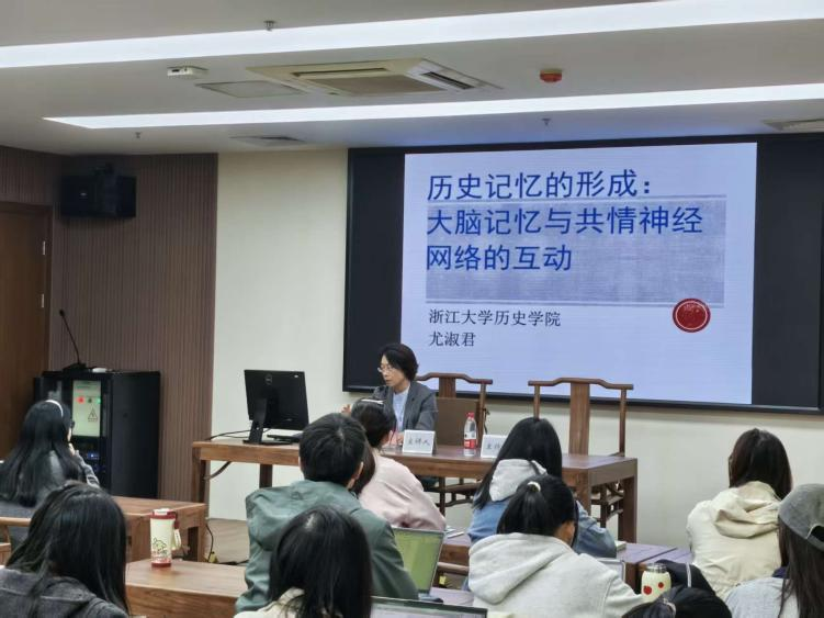2025年11月12日,浙江大学尤淑君教授应邀来老虎机 讲学。此次讲题为“历史记忆的形成:大脑记忆与共情网络的互动”。讲座由老虎机 陈兆肆教授担任主持人,余辉博士、赵卓博士以及研究生、本科生50余名师生参加。