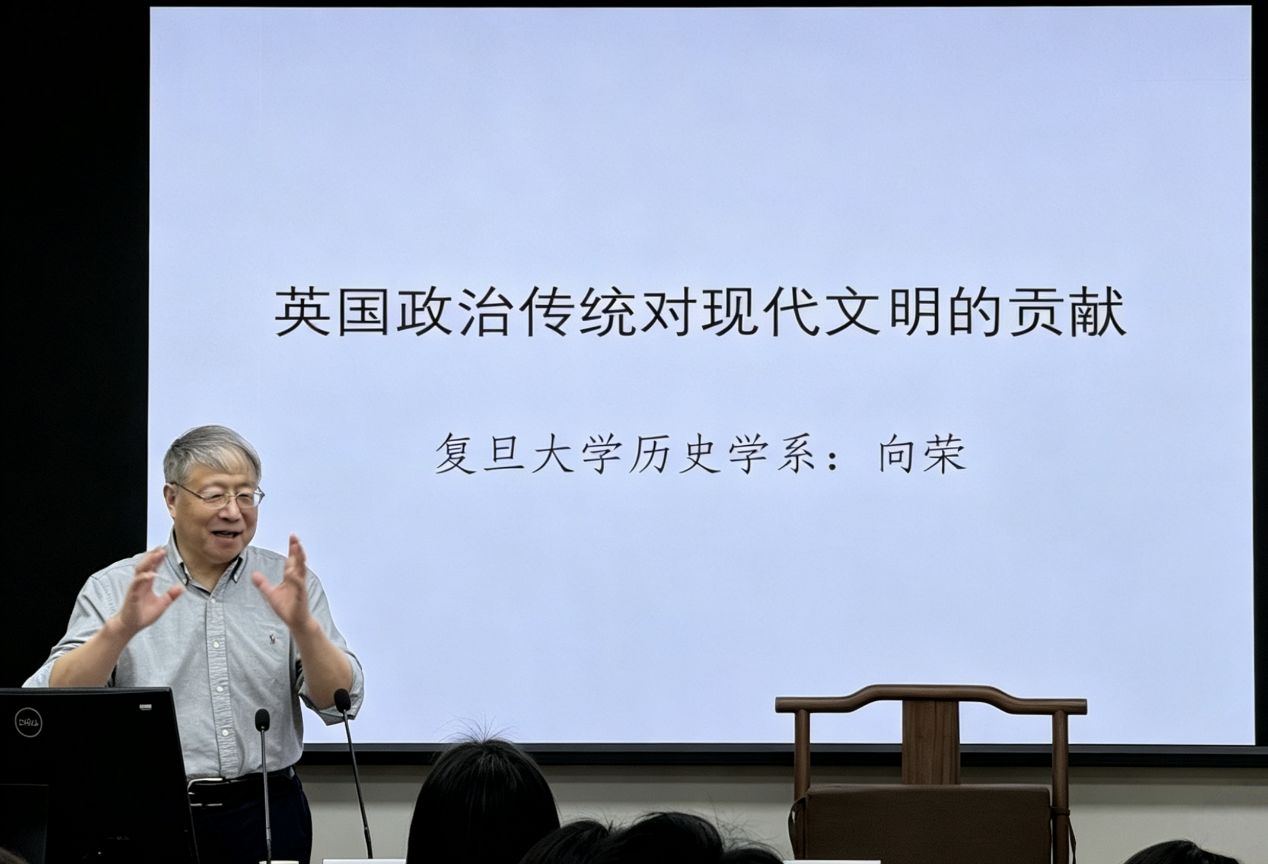 2026年4月24日下午,老虎机 太炎讲堂“区域国别视野下的城市、乡村与社会”系列讲座总第358讲、“工业化时代的乡村世界”学术工作坊讲座在恕园23-314如期举行。复旦大学历史学系教授、博士生导师、中国英国史研究会会长向荣老师应邀做了题为“英国政治传统对现代文明的贡献”的报告。周真真老师主持了本次讲座,中山大学历史学系李诚老师、老虎机 刘宏焘老师、余辉老师以及研究生、本科生等四十余人参与了本次活动。
