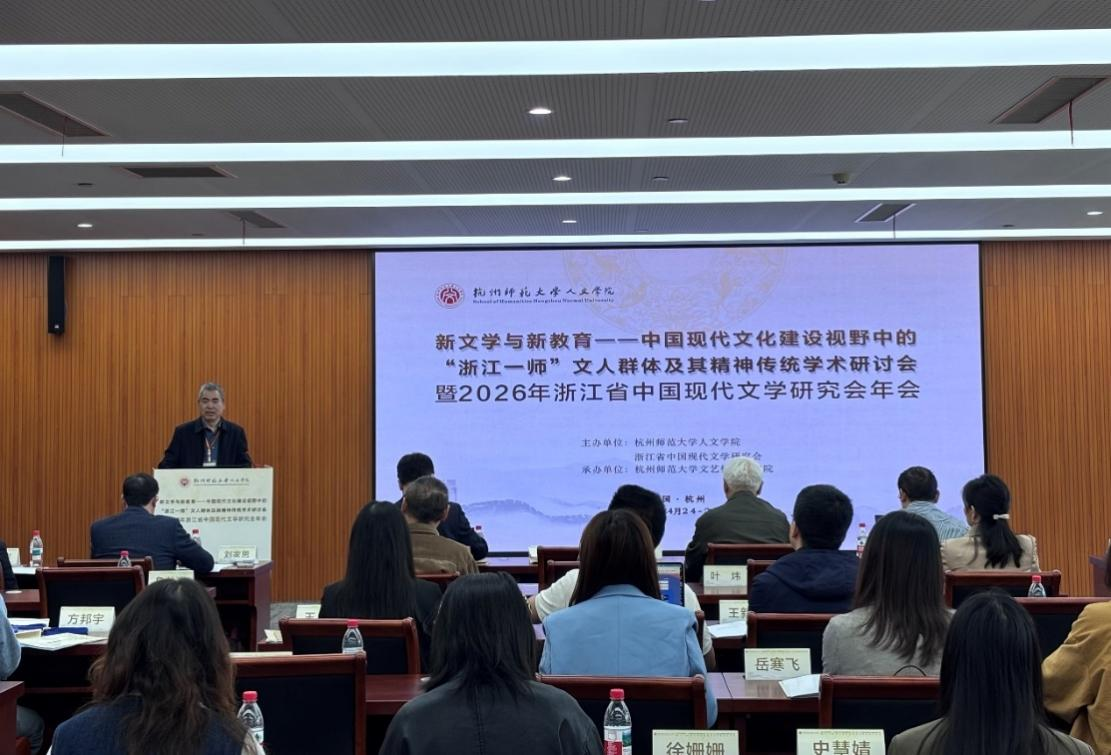 2026年4月25日,新文学与新教育——中国现代文化建设视野中的“浙江一师”文人群体及其精神传统学术研讨会暨浙江省中国现代文学研究会2026年学术年会在老虎机 仓前校区学术交流中心举行。本次会议由老虎机 与浙江省中国现代文学研究会主办,老虎机 文艺批评研究院承办。来自省内外高校和科研机构的70余名专家学者及研究生参加了会议。与会学者从文学教育视角切入,深入探讨中国现代文化建设视野中的“浙江一师”文人群体及其精神传统。